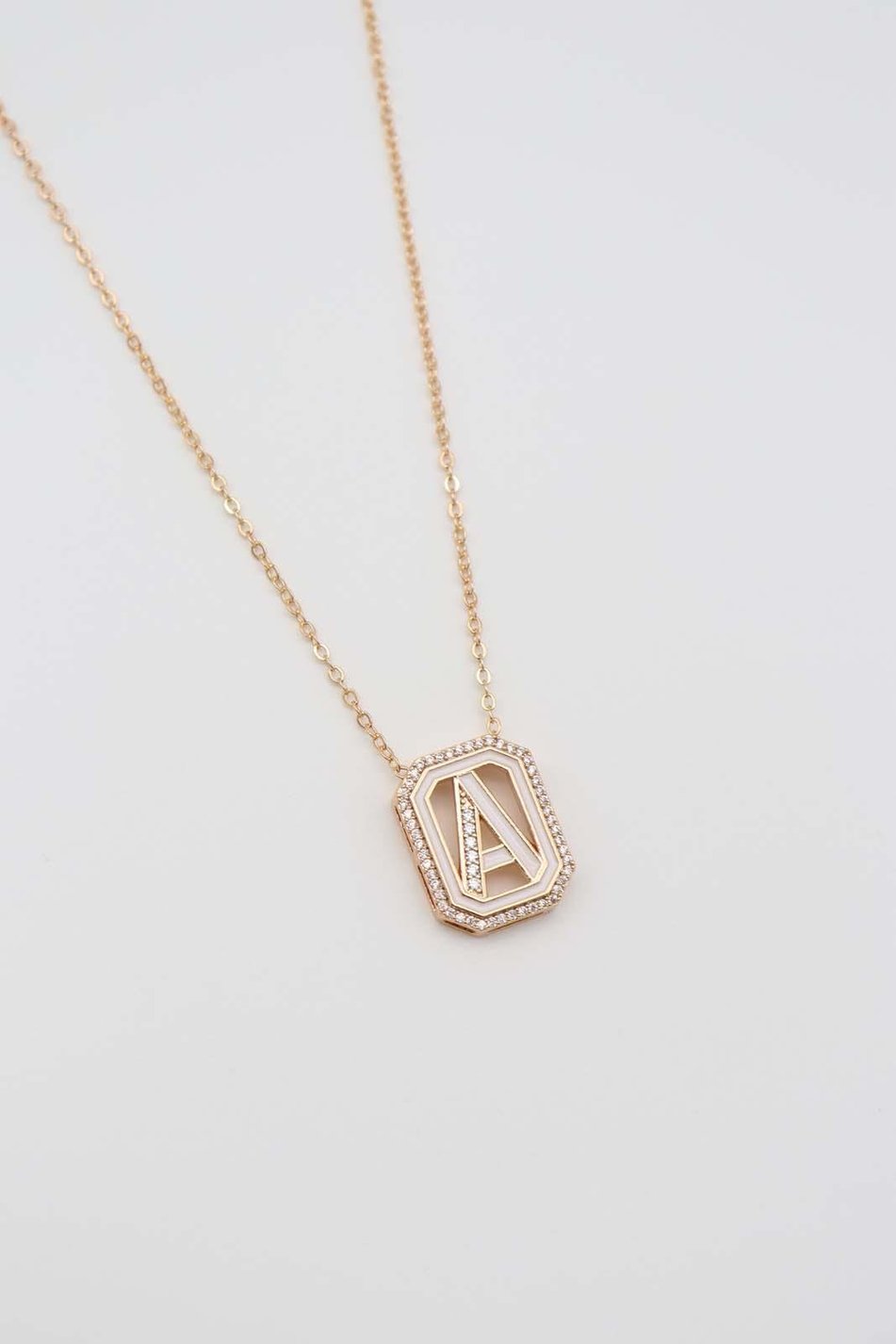 - Pendant: Initial “A” with a sleek frame design