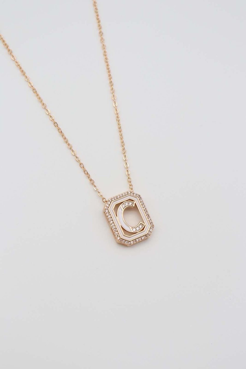 - Pendant: Initial “C” with a sleek frame design