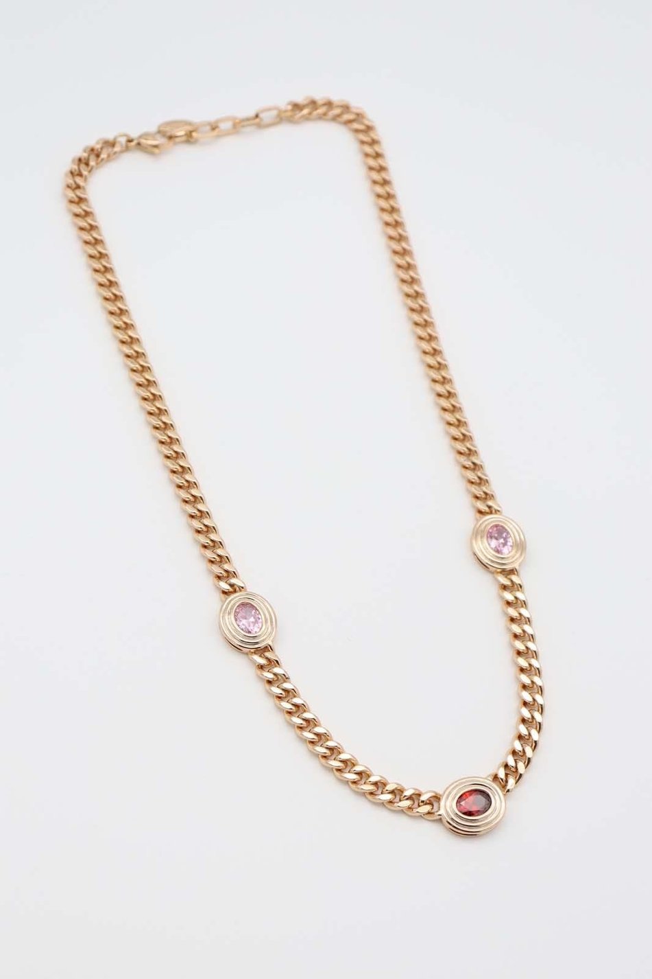 Add a vibrant pop of color to your look with this elegant chain necklace from our Laleli VIP Series. Featuring bold pink and red zircon stones in bezel settings, this piece combines classic charm with modern sophistication.