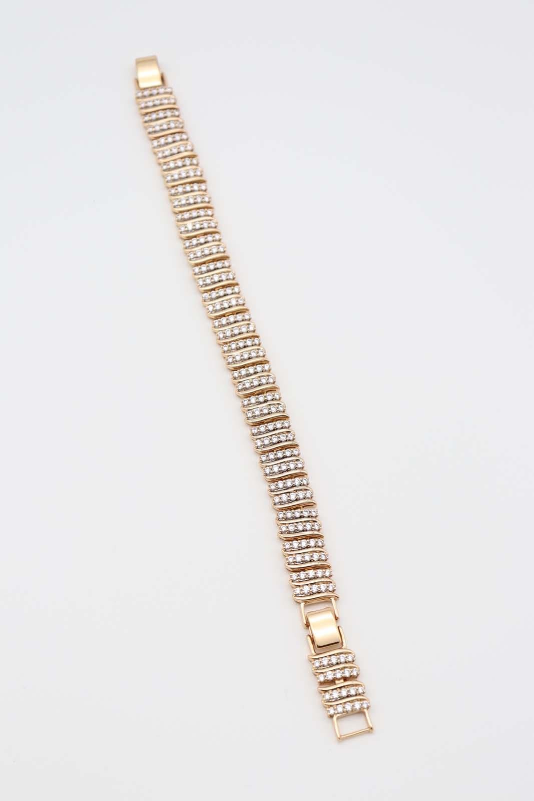 - Design: Multi-row zircon crystal detailing with a secure clasp