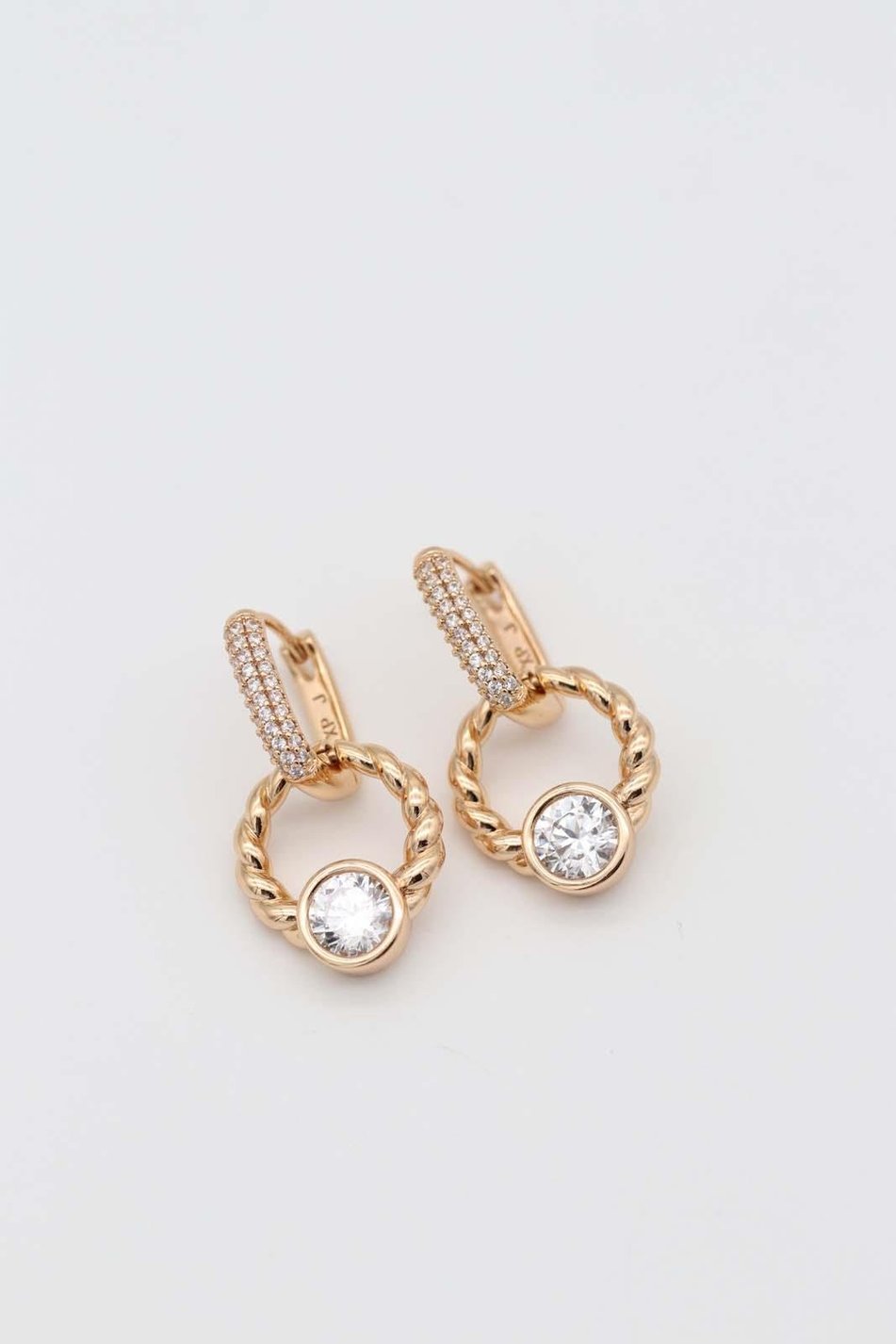 Radiate elegance with the **Gold Twisted CZ Drop Earrings**, featuring a sparkling cubic zirconia encased in a twisted gold setting.