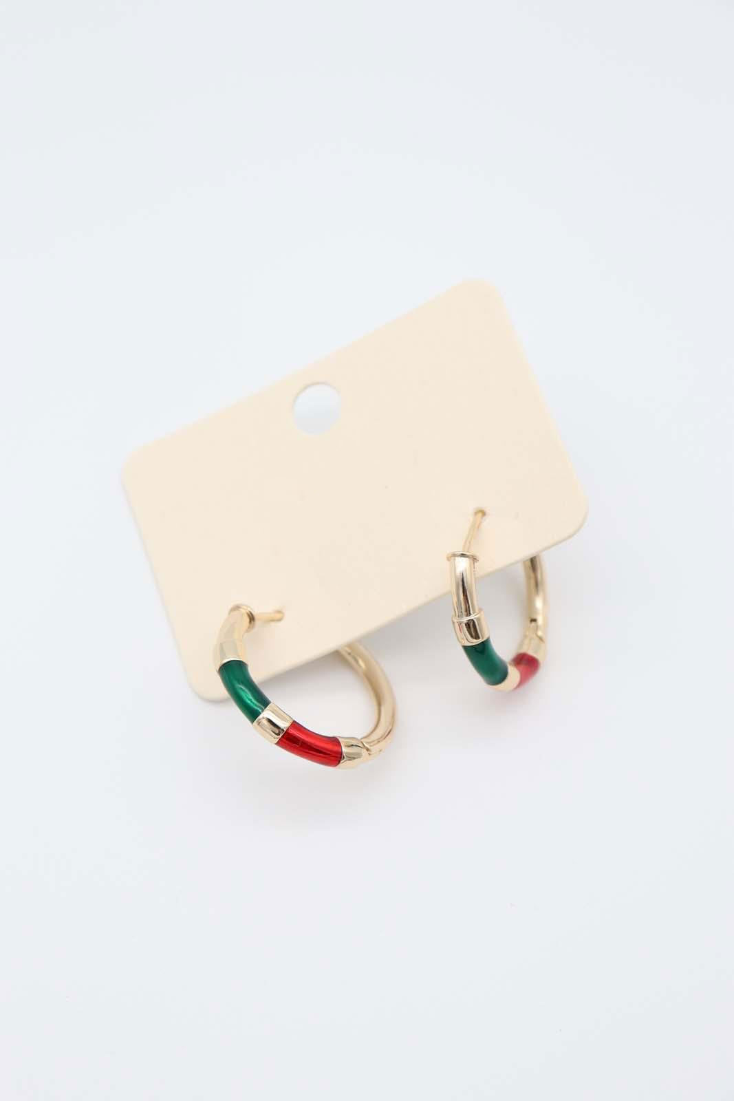 Add a playful pop of colour to your ensemble with these vibrant earrings from the Laleli Signature Collection. Featuring a unique combination of red and green accents, these earrings offer a modern twist to the classic hoop design.