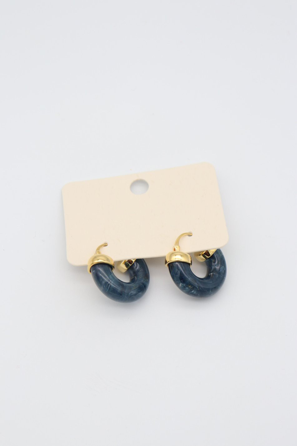 - Design: Midnight blue resin hoops with a marbled swirl pattern